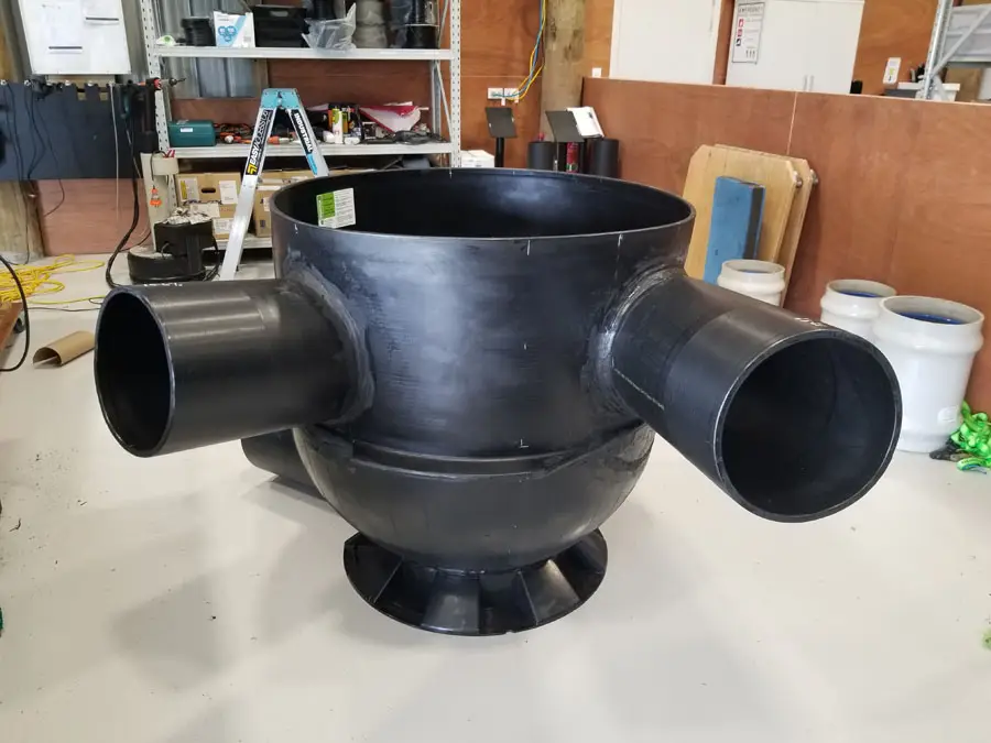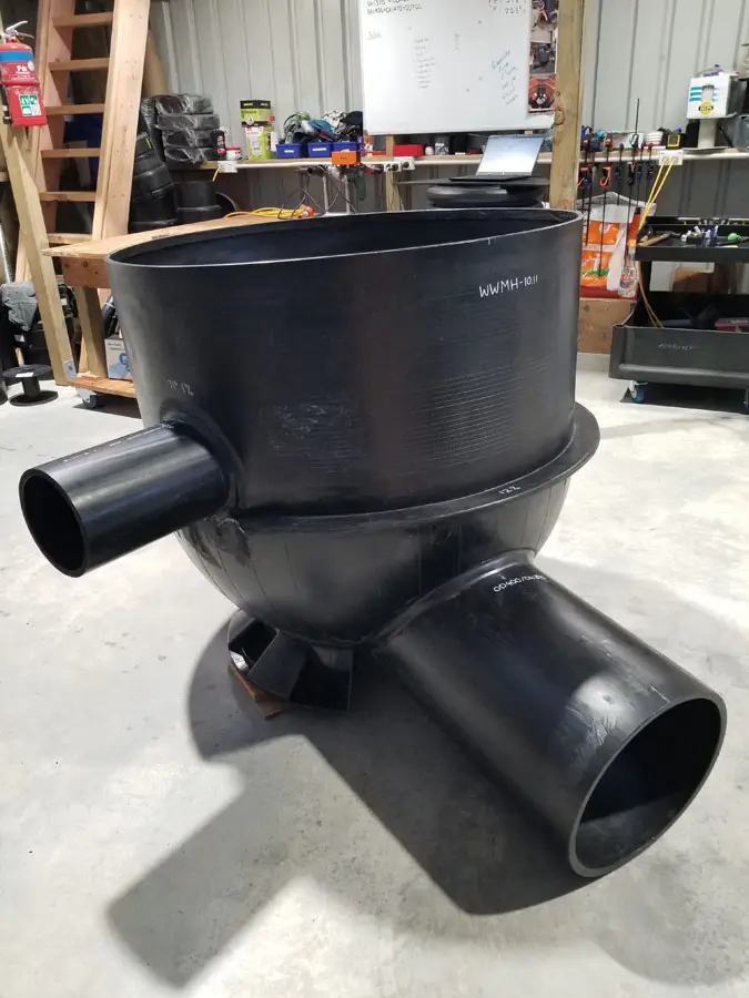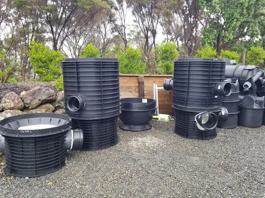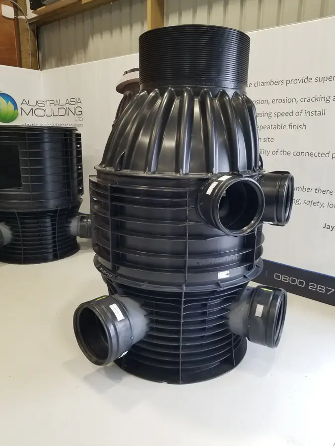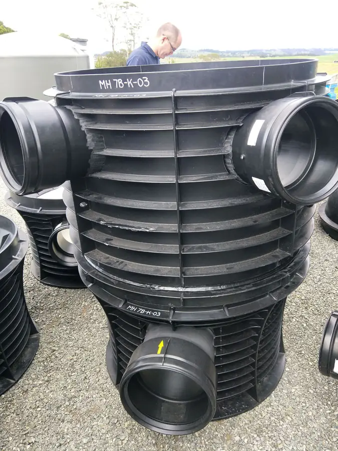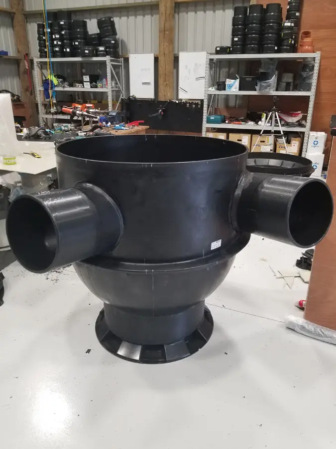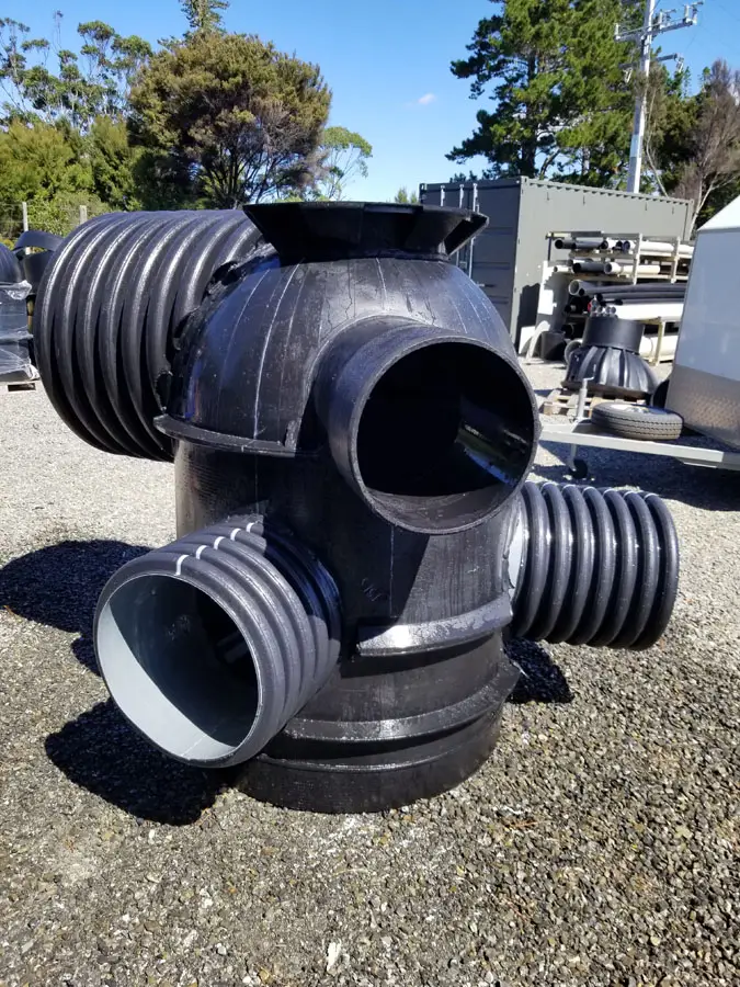 Custom manhole chamber bases are produced in Kerikeri at the AML workshop. Starting with ROMOLD mouldings, the bases are either modified or built from scratch to reflect the project requirements. This allows a near unlimited scope of solutions and ensures that the ROMOLD manhole can be applied to all New Zealand projects.