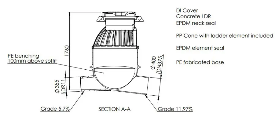 For manhole chambers that require inlet angles outside of the standard configurations, or for manholes connecting to different pipe sizes and materials, AML offer customized solutions.